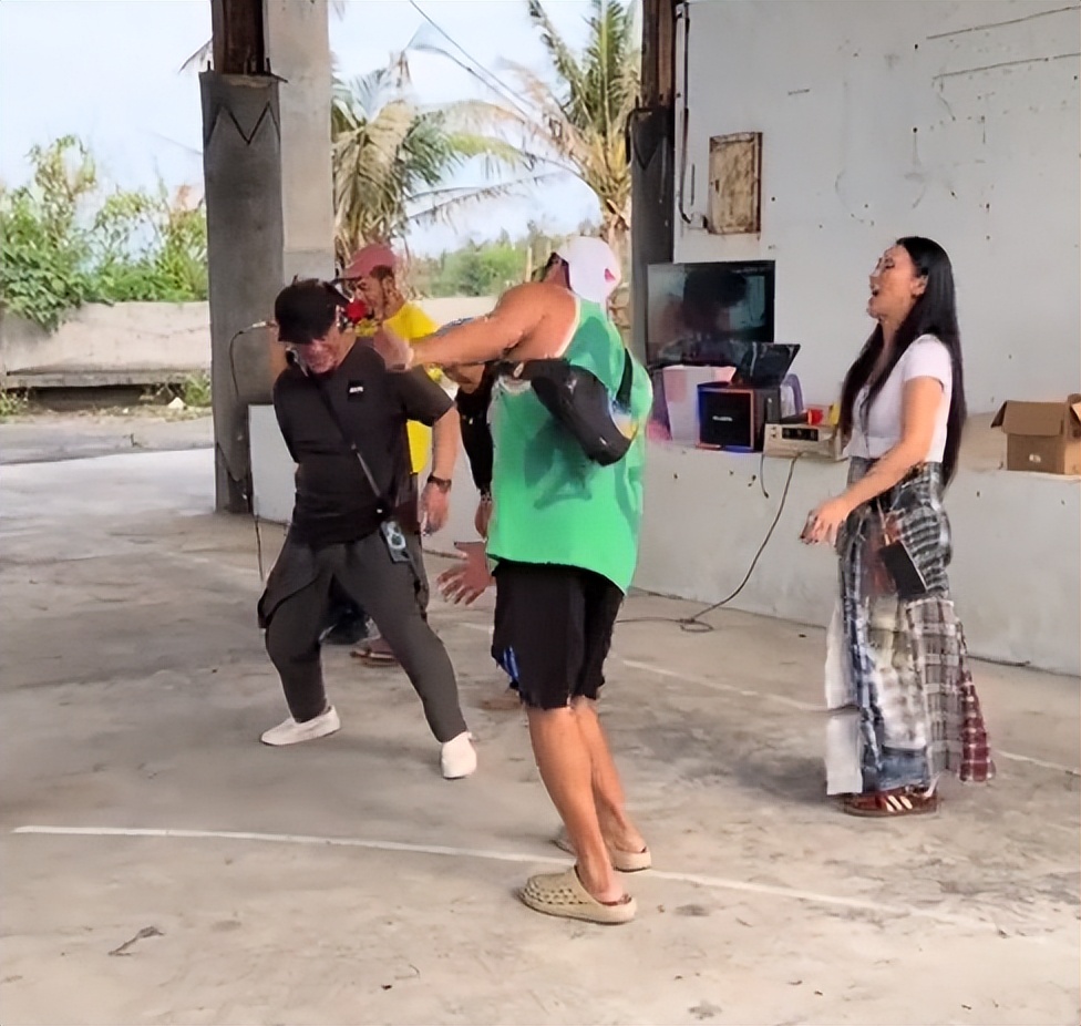 他就站在院子中间,拿着话筒一首接一首地唱,唱的都是自己的经典老歌,身边的原住民围在一起,跟着节奏拍手、哼唱,氛围特别热闹,偶尔和族人对视一笑,眼里满是温柔。