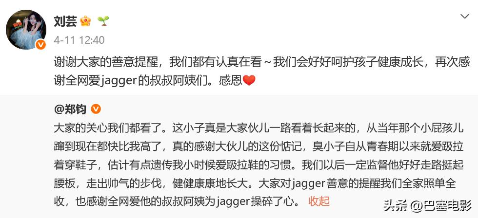 于是大家跑到郑钧和刘芸的评论区,劝他们尽早干预,带Jagger到医院做检查。