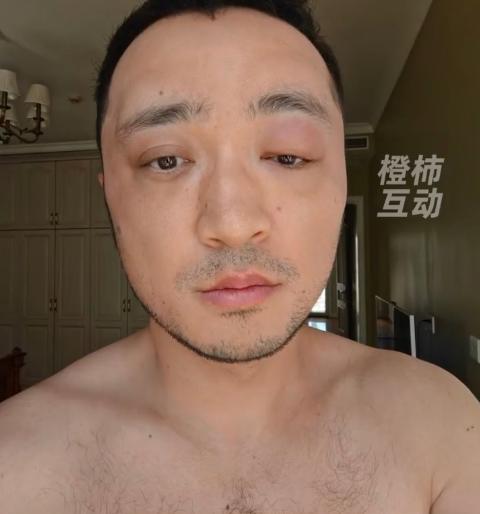 后来他干脆又补发了两张,照片里的他,状态差到让人认不出。他裸露着上身,能看到脖颈处也有明显的泛红,最吓人的是眼睛。
