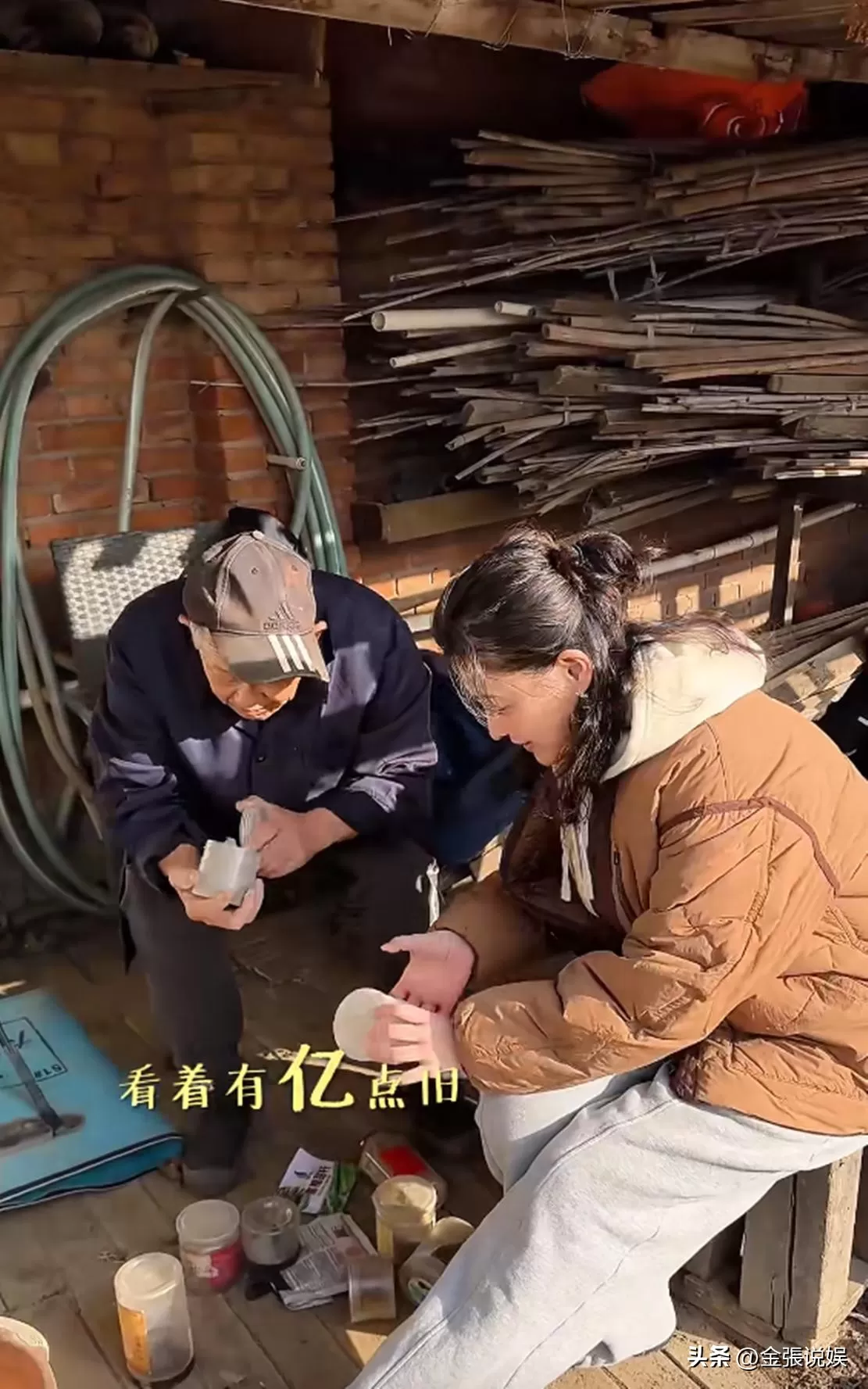 梅婷和公公之间的相处却完全不是这个氛围,更像是一对关系亲近的父女——公公干活,儿媳在旁边帮忙;儿媳担心老人累,公公被照顾着心里也高兴。