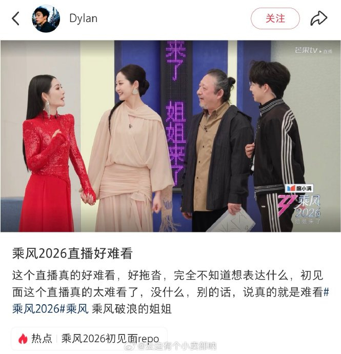 当《乘风2026》初见面直播因节奏拖沓引发全网吐槽时,王濛一句“哎哟妈呀太磨叽了!”的直率发言,瞬间点燃观众共鸣,将这场“直播事故”变成了她的高光时刻。