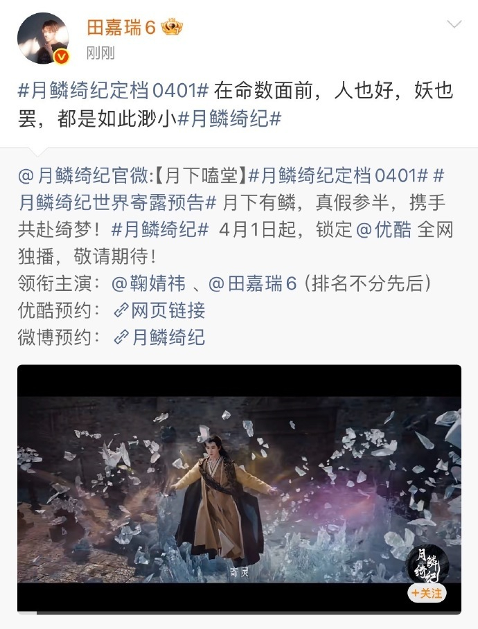 #田嘉瑞第三个代表作##杨迪你可以提问田嘉瑞三部作品了# 月鳞绮纪终于要来了🔥继云之羽、大梦归离,坐等开播!以后玩游戏被问作品,终于能大大方方三连答啦~杨迪可以来提问三部作品了💖