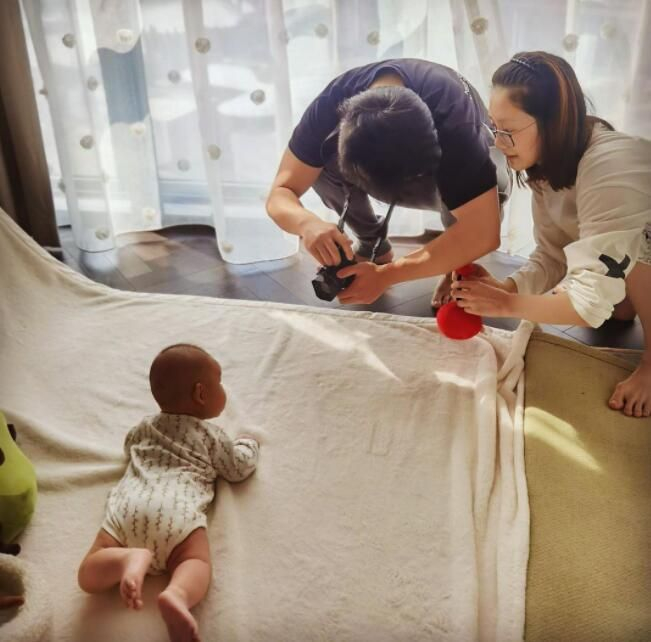 18日,郑恺在社交平台上晒出一家三口的合照为女儿庆祝满百天,这也是郑恺首次晒出女儿的全身照。照片中,郑恺手里拿着相机,蹲地给女儿拍照,而苗苗负责逗宝宝,手里拿着红色玩具吸引女儿的注意力。