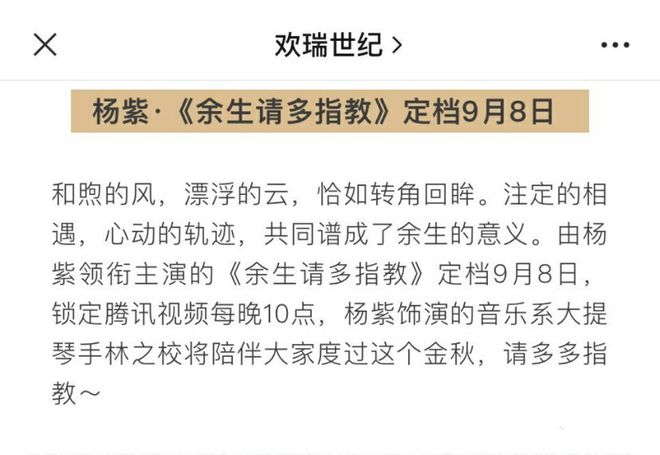 因为前两天,便有传言关于《余生,请多指教》延期消息。昨日杨紫的经纪公司欢瑞世纪,还特意发文“辟谣”,强调《余生,请多指教》会如期播出,如今刚过一天,就被官方实锤“延期”消息,着实有些尴尬。