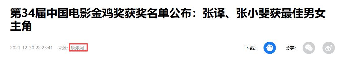 映象网|第34届中国电影金鸡奖获奖名单公布:张译、张小斐获最佳男女主角