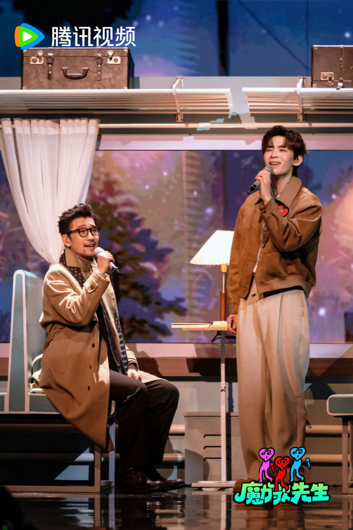 谈及《岁月里的花》的创作思路碰撞,蔡淇称两人几乎是一拍即合。确定组队后,他们立刻交流了舞台想法,发现80%以上的理念不谋而合——两人都希望打造剧情向的、偏音乐剧风格的抒情慢歌,用留白的方式带给观众想象的空间。因为在节目里他和满江被大家戏称为“父子兵”,这次合作他俩就希望模糊两人的关系定位,不刻意定义是父子、朋友,还是平行时空里不同年纪的同一个人,让观众自行感受、自由解读。
