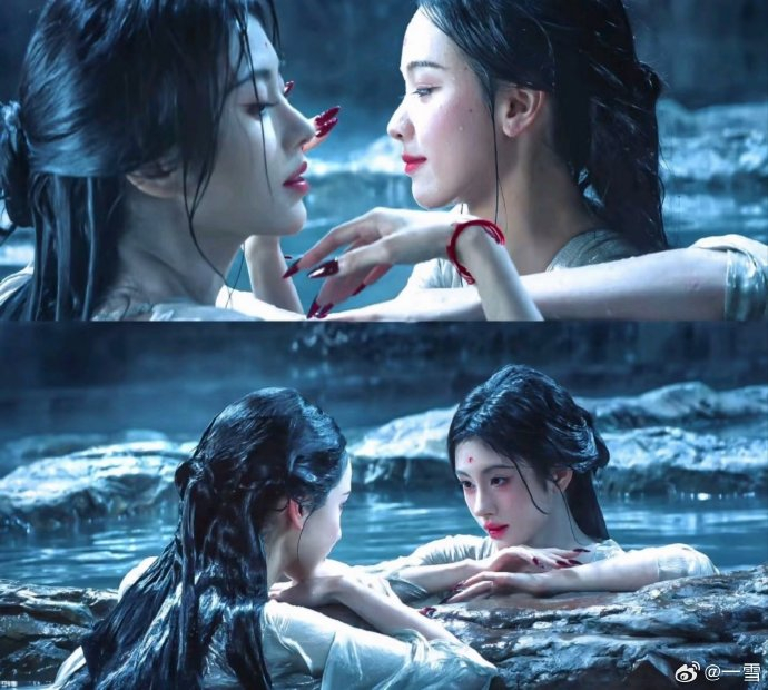 普通观众对"神性镜头"的推崇集中于直观美学体验。如第六集龙神降临场景(白发黑袍凌空而降、紫电缠绕的压迫感运镜),观众盛赞其"每分钟8万特效经费在燃烧"的震撼,尤其田嘉瑞"自扇巴掌"演绎神性与人性的撕裂时,弹幕高频出现"破碎感封神""眼睛被净化"等感叹。双女主浴池戏中风吹头纱的镜头,更被普通观众誉为"动漫级神作",强调鞠婧祎与陈都灵的"神女临世"氛围让视觉享受超越剧情理解。这种评价本质是感官主导型审美,正如网友坦言:"剧情看懂与否不重要,对我的眼睛很友好"。
