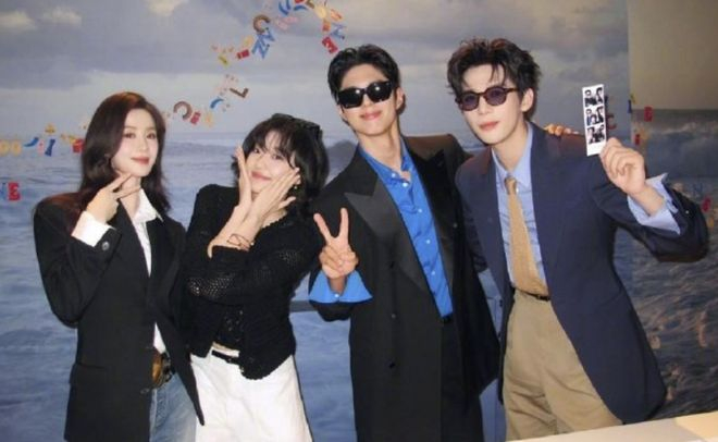 刘诗诗、孙千两位女星也惊喜助阵,四人齐聚一堂,氛围感直接拉满,四人同框拍摄搞怪四连拍,镜头前毫无生疏感,笑容灿烂、氛围融洽。