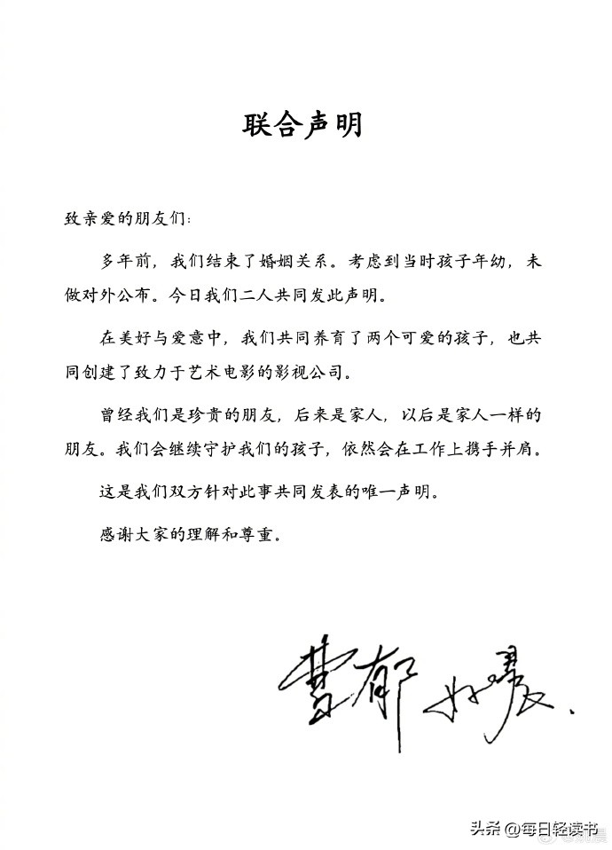 这次两人的离婚公告中,也没有说出两人究竟是什么时候离的婚。