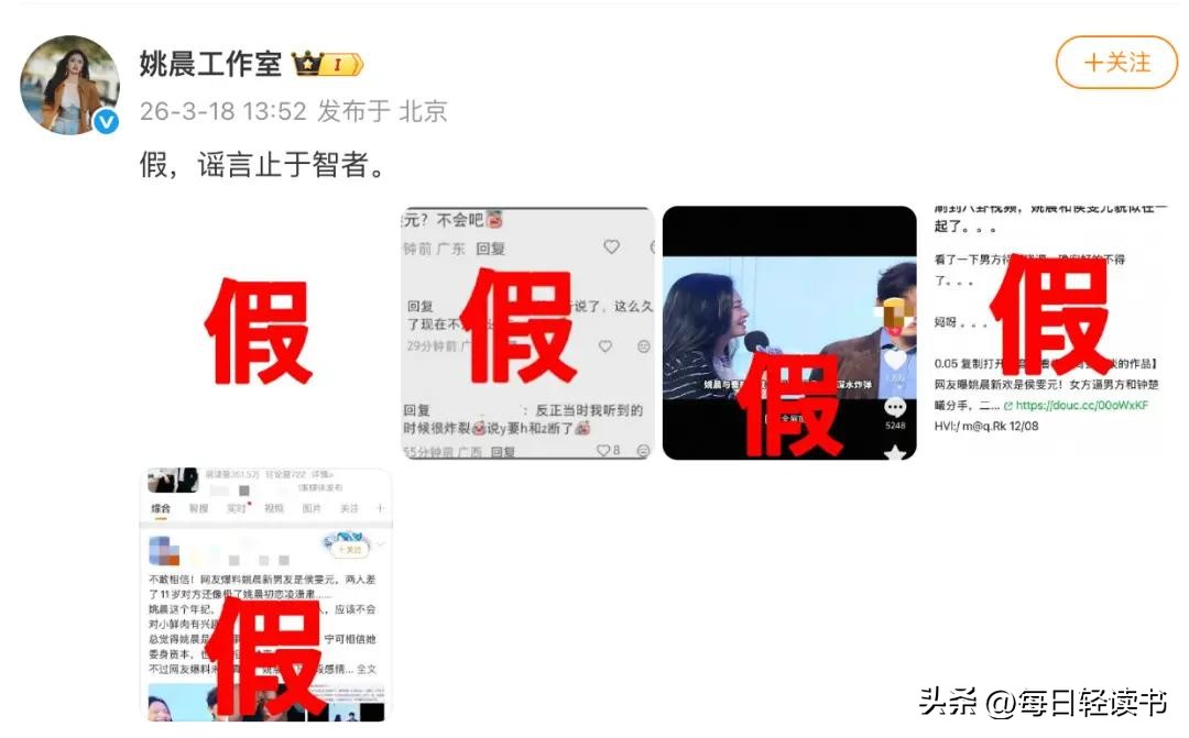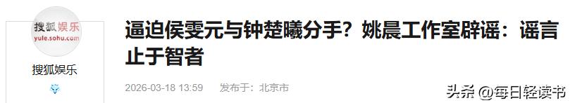 搜狐娱乐(逼迫侯雯元与钟楚曦分手?姚晨工作室辟谣:谣言止于智者 2026.3.18)