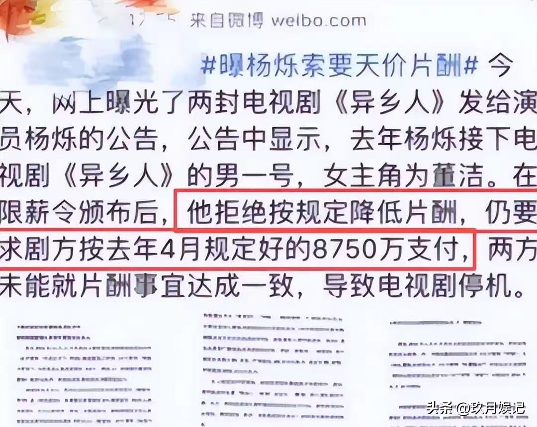 与同期一线演员主动降薪相比,杨烁的8750万显得格外刺眼。