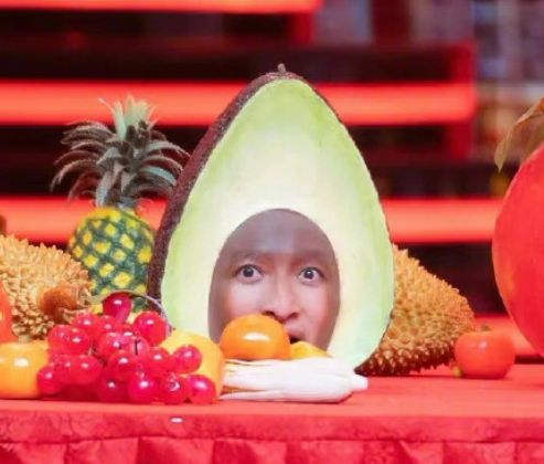 在众多头部造型中,最出圈的就是牛油果造型了,当李维嘉的“牛油果”混在了水果堆里,竟然毫无违和感,有点像水果特效了,但整个脸部的轮廓还是看得见的,再看看一个柠檬的造型,全脸都被涂上了黄色,还穿上了黄色外套,和柠檬宛如一体,真是上演柠檬人,柠檬树下你和我。