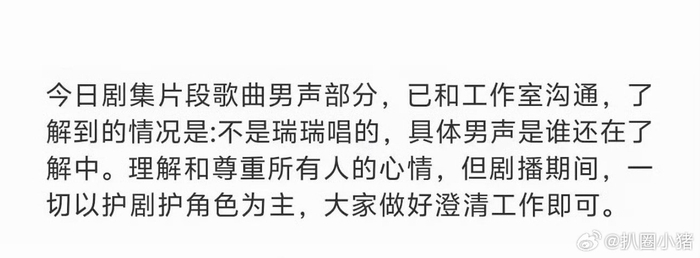 田嘉瑞粉丝和工作室沟通了解到的情况是: 歌曲的男声部分并不是田嘉瑞唱的!田嘉瑞无妄之灾,嘉竹桃默默护剧