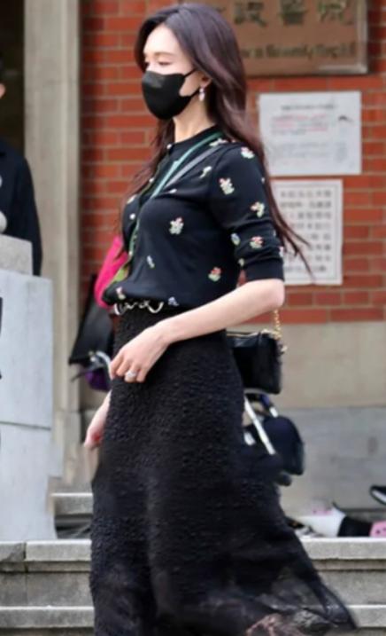 当天,她打扮得格外低调,把自己遮得严严实实。