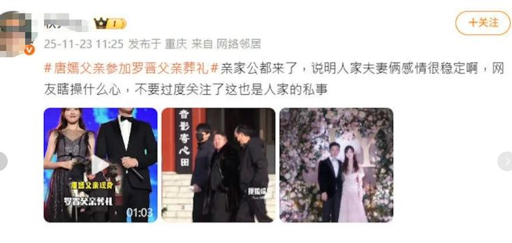 但造谣很快不攻自破,罗晋父亲葬礼那天,唐嫣早早从秘密通道进入会场,并且全程陪伴在伤心欲绝的罗晋身边。