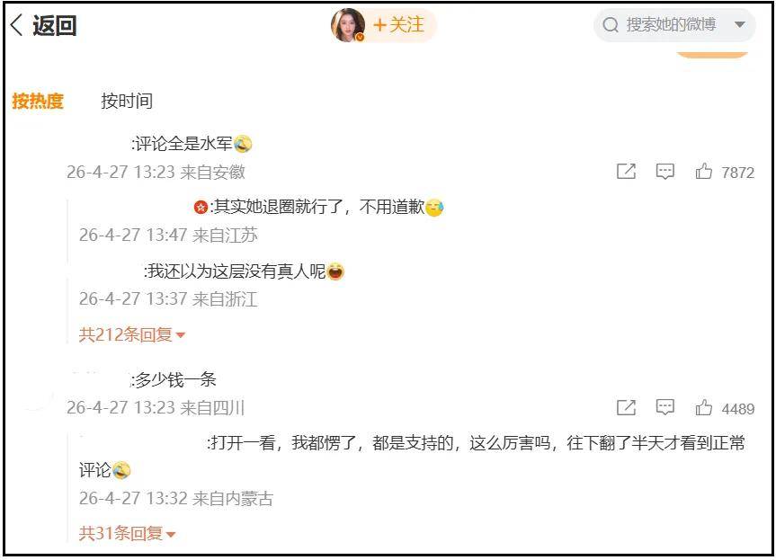 至于黄杨钿甜到底有没有找水军洗白,这里就不断言了,上一张黄杨钿甜社媒评论区截图,大家自行感受吧。