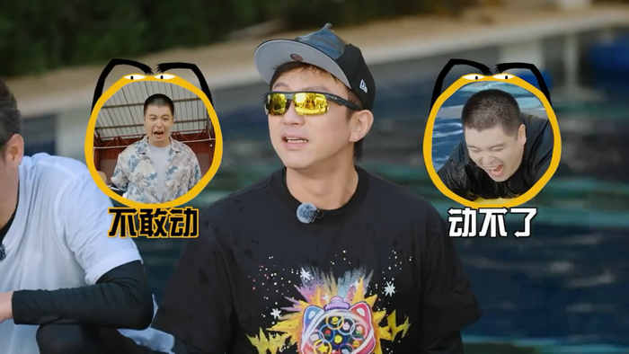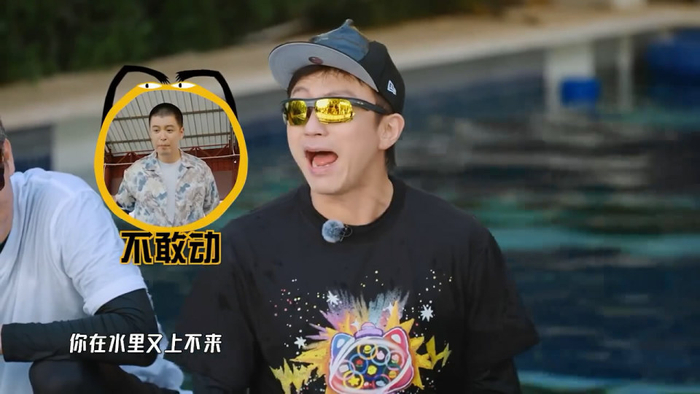 可轮到马頔的时候,画风却彻底变了。刚下水没多久,马頔就开始连连喊停,嘴里不停念叨着“不行不行”,理由是泳池里的水太凉,自己刚结婚,还准备要孩子呢。