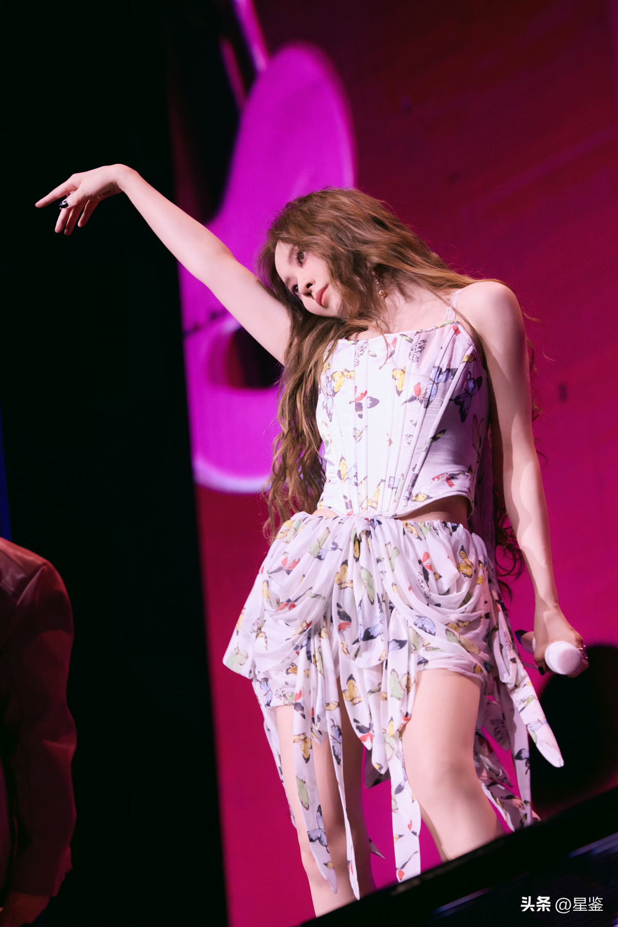 张靓颖的这两套造型,简直就是仙女下凡的典范!首先来看那套蝴蝶印花舞台装,奶白底配彩色蝴蝶,简直就是甜辣感直冲天!鱼骨束腰让她身材线条分明得不得了,丝毫没有被束缚感的负担,反而显得更加飘逸自在,再来看不规则飘带裙摆,舞动起来简直像一只在空中翩翩起舞的蝴蝶,既甜又飒,瞬间拉满了整个舞台的张力,简直要把人吸进去!配上慵懒的羊毛卷长发,再搭配一双黑美甲,甜妹外表下藏着满满的酷感,日常穿搭直接出片,简直就是白嫖经济的典范!这套造型的设计思路简直绝绝子,印花+束腰+不规则设计,完全可以照搬,轻松就能穿出明星感!无论是舞台造型还是日常穿搭,张靓颖都玩得妥妥的,甜辣感拉满,舞台氛围感直接封神,简直要把人逼出一屋子感叹词!