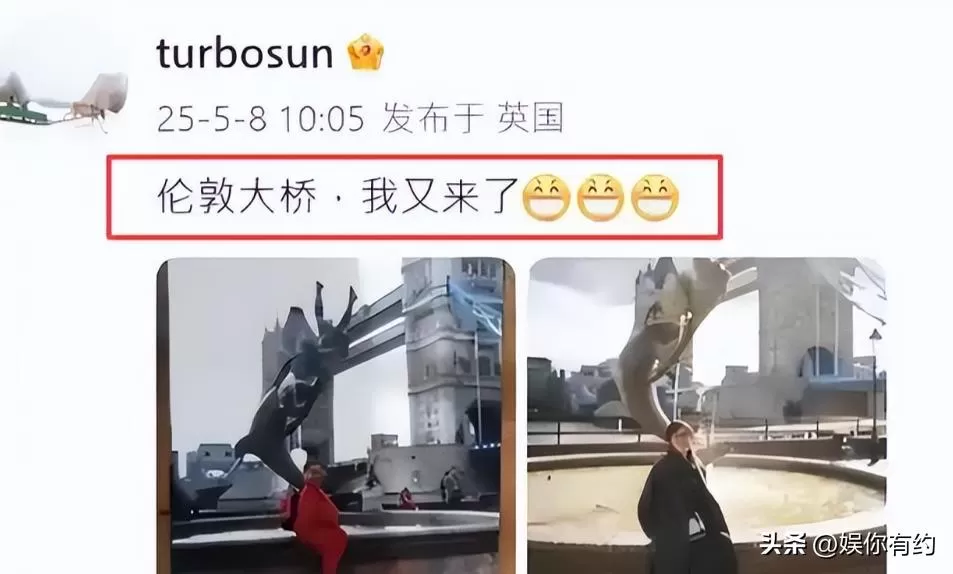可惜当俪姐晒出两张英国出行的照片,并配上“伦敦大桥,我又来了”的言论后,