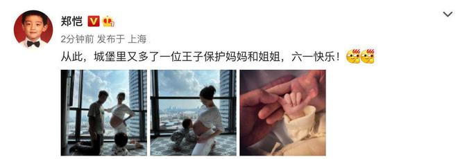 这两天在娱乐圈吃了太多奇奇怪怪的瓜,关于汪小菲张颖颖事件让大众感受到爱情来得太快,去得也快,直到看到很多明星生子的消息,才感受到了一丝丝浓情蜜意。郑恺官宣妻子苗苗二胎生子的喜讯,直言从此以后,城堡里多了一位小王子守护着妈妈和姐姐。