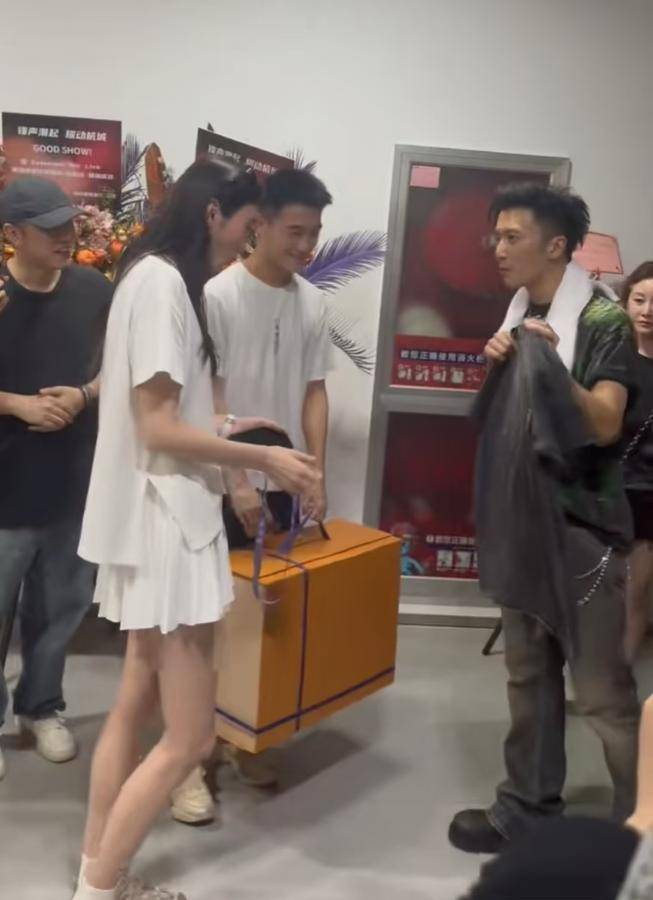 不仅如此,奚梦瑶也为谢霆锋准备了礼物。有网友在后台偶遇到奚梦瑶与何猷君,发现何猷君正抱着一个巨大的LV礼盒,显然是准备送给偶像的珍贵礼物。在奚梦瑶与谢霆锋亲切交流的同时,何猷君则在一旁默默地拿着礼物,网友们幽默地调侃他像是奚梦瑶的小跟班,专心帮助她提东西。