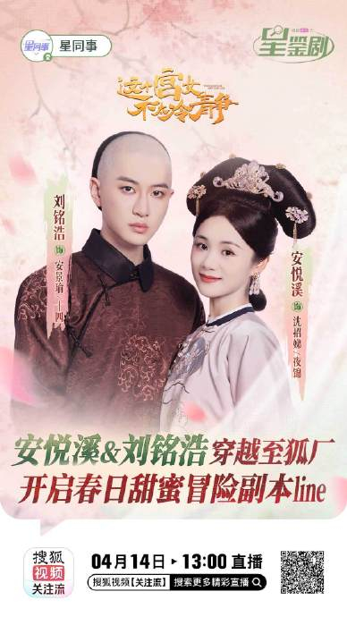 2026年4月13日,安悦溪与刘铭浩携腾讯视频热播短剧《这个宫女不太冷静》空降搜狐视频“星同事”直播间。该剧开播首日热度突破17097,强势登顶平台双榜榜首。剧中两人饰演穿越医女夜锦与冷面王爷安景瑜,从互相试探到生死相依的情感线收获大量关注。直播以“浪漫春日冒险副本”为主题,通过默契考验、片场趣事分享等环节,自然引出“恋爱脑”这一观众热议话题。