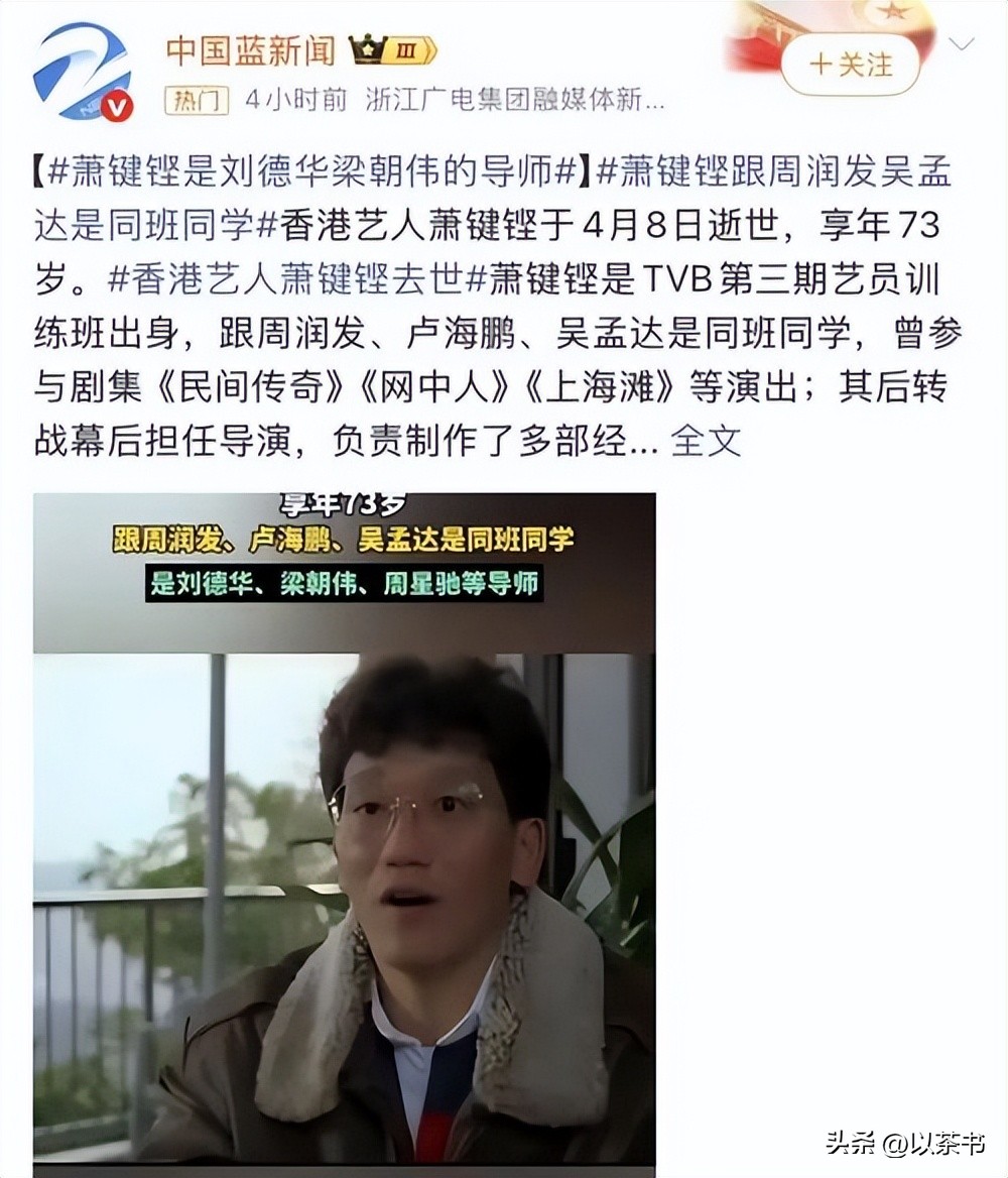 4月8日,73岁的萧键铿因为肺炎合并心脏衰竭离世。萧键铿这个名字普通观众可能不太熟,但在香港影视圈内部,他的分量相当重。