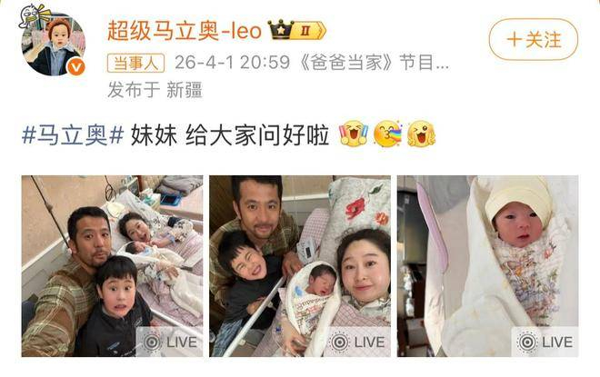 嗨,大家好!这里是你们的娱乐寡姐,为你带来最新、最暖心的娱乐资讯。今天要分享的消息特别令人开心——凭借《爸爸当家》走红的萌娃马立奥,终于迎来了小妹妹的到来!他的父母,马杨和马君妍,在社交平台上正式官宣了二胎喜讯,同时还晒出了一家四口的温馨合照。透过照片可以看出,小公主颜值颇高,鼻梁挺拔,真是可爱又精致。一家四口其乐融融,儿女双全,这幸福感几乎溢出来,让人看了心里暖暖的。