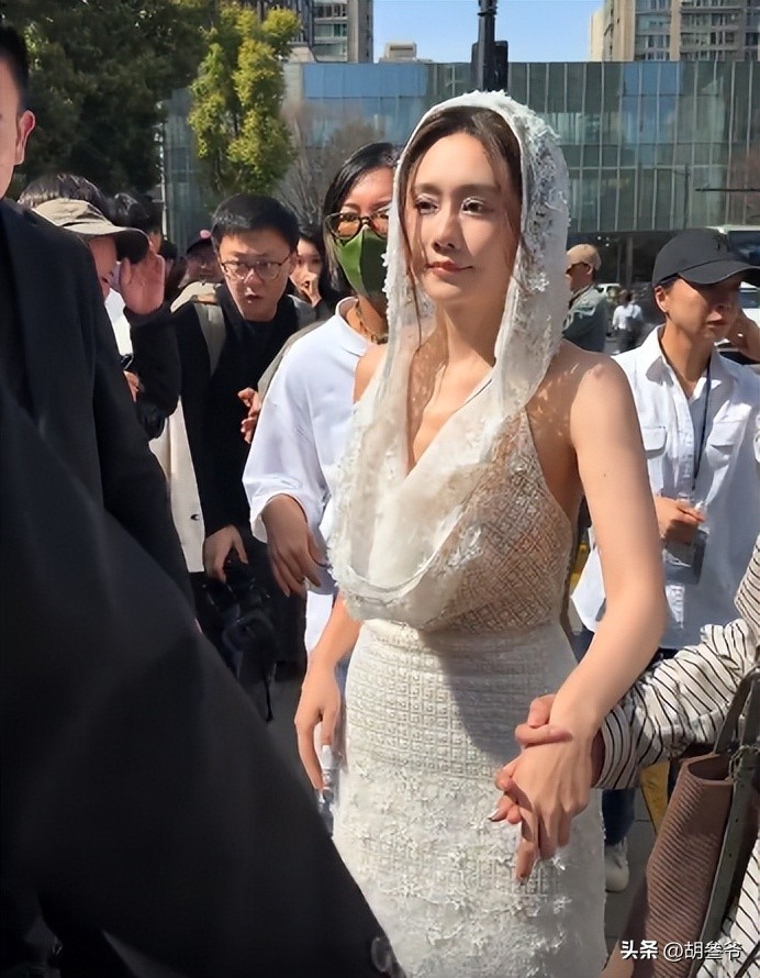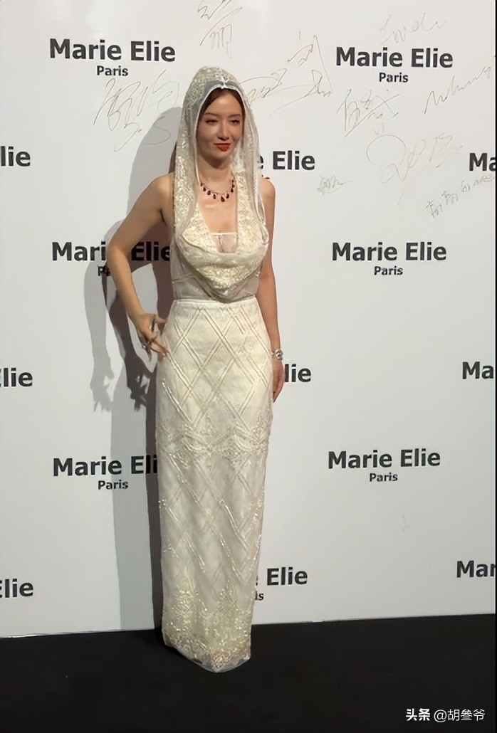 刘芸这次的造型算是彻底栽了,她选的白色挂脖蕾丝镶钻连衣裙。