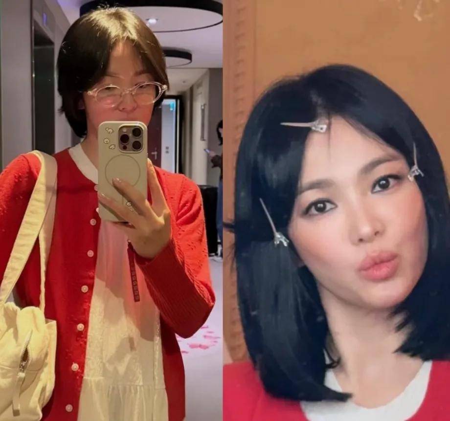 好巧不巧,宋慧乔还在社媒自曝了一系列近照,打扮格外放飞,红色开衫、白色内搭和细腿牛仔裤一上身,搭配上透明镜框圆眼镜,不止一位网友直呼宋慧乔好像我奶奶——她戴的真的不是老花镜吗?