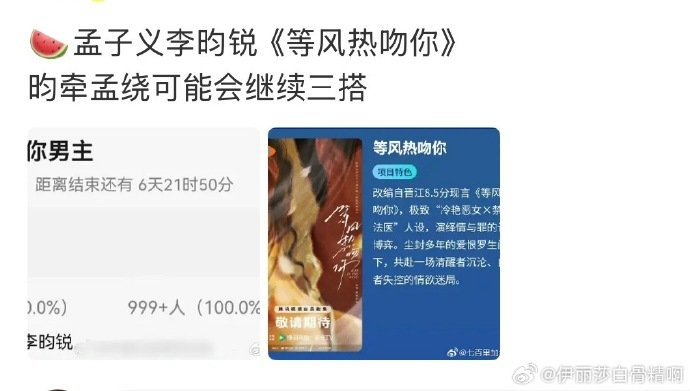 #曝孟子义李昀锐等风热吻你三搭#孟子义 李昀锐《等风热吻你》要三搭?? #网传孟子义李昀锐等风热吻你##娱乐[超话]#