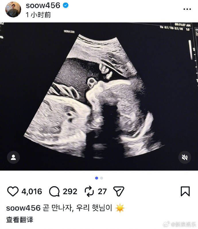 宋承炫于2026年4月21日发布两张胎儿B超照片,并附文“就快见面了,我们的小太阳”,直接透露妻子孕期进展,暗示孩子即将出生。