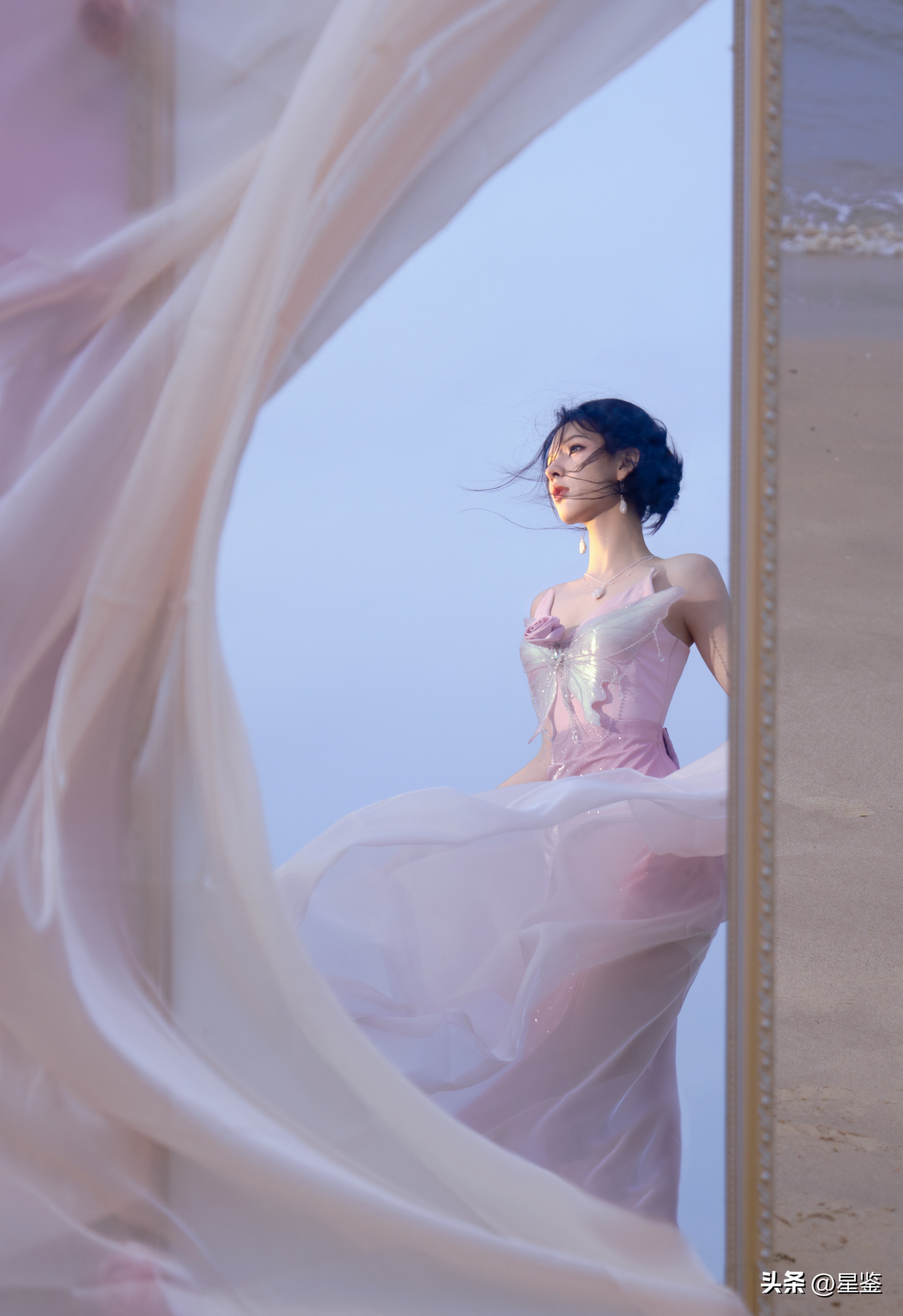 张予曦这组海边造型,把温柔和仙气揉得恰到好处,粉紫渐变裙装自带柔光滤镜,完全是普通人也能借鉴的氛围感模板。