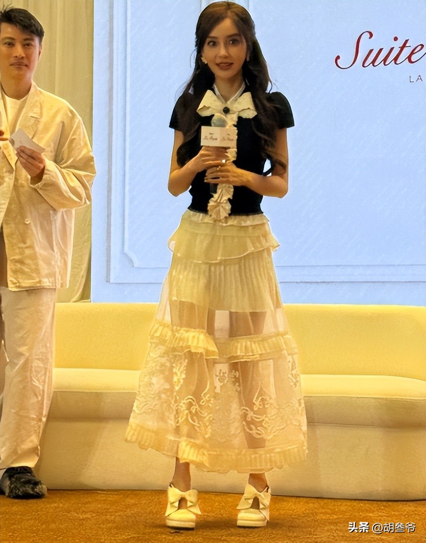 现场她穿了一身黑色蕾丝纱裙,明眼人都能看出来,这身穿搭和杨颖的造型高度相似,说是撞衫,倒更像是刻意的模仿。