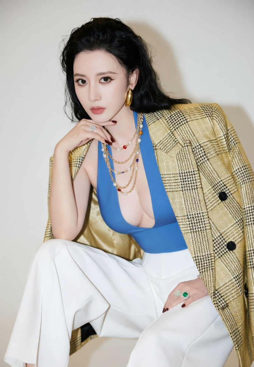 **张萌这身造型也太贵气逼人了吧!这才是真正的“富贵辣”做法!**,姐妹们,张萌这身造型简直就是“贵气”达人级别!一看这身浓颜系风格,直接让人感觉像一只“贵气小queen”!这身造型最抢手的地方在“繁简平衡”上,简直是“玩家”的标配。,这件纯蓝深V挂脖连体裤,简直就是造型的灵魂!剪裁利落,腰臀比勾勒得分毫不差,阔腿裤的面料垂感十足,走起路来都像个风筝一样飘飘然,最绝的是那深V设计,锁骨露得恰到好处,既不会显得太低头,又能留下足够的“呼吸感”,整个人看着既舒服又高级。,配饰方面,张萌直接拿捏住了“贵气”的关键!脖子上一挂就是珍珠、彩宝、粗金链子混搭,脖颈填得满满当当,复古风一跃而起,感觉自己都快变成贵气小主子了!配上宽边金耳饰,瞬间把脸缩小一圈,简直就是“气场爆棚”,再加上那抹酒红美甲,冷暖色调一撞,细节控到极致,简直就是“配饰控”的典范。,黑白格纹西装的出现,把整体造型又推上了一层楼,原本性感的连体裤被西装压住了几分,多了份职场大女主的利落感,这种“内搭极简+配饰繁复+外套压阵”的搭配方式,简直就是“气场法师”在发挥!无论是晚宴还是日常通勤,这身造型都能让人一眼看出气场满满,简直就是“贵气界的天花板”!,张萌这身造型绝对是“富贵辣”界的标杆!配饰控、剪裁神、气场满满,简直就是“直接宠成小公主”!这才是真正的“贵气逼人”!