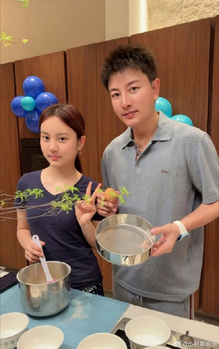 甜馨本次为父亲策划了一场充满童真温情的生日庆祝:13岁的她全程参与蛋糕制作,与贾乃亮在厨房互动协作。合照中,父女俩手持成品蛋糕并肩微笑,贾乃亮身穿灰色休闲装状态年轻,甜馨长发披肩身高已至父亲耳际,两人眉眼轮廓高度相似,被网友形容为"基因的完美复刻"。