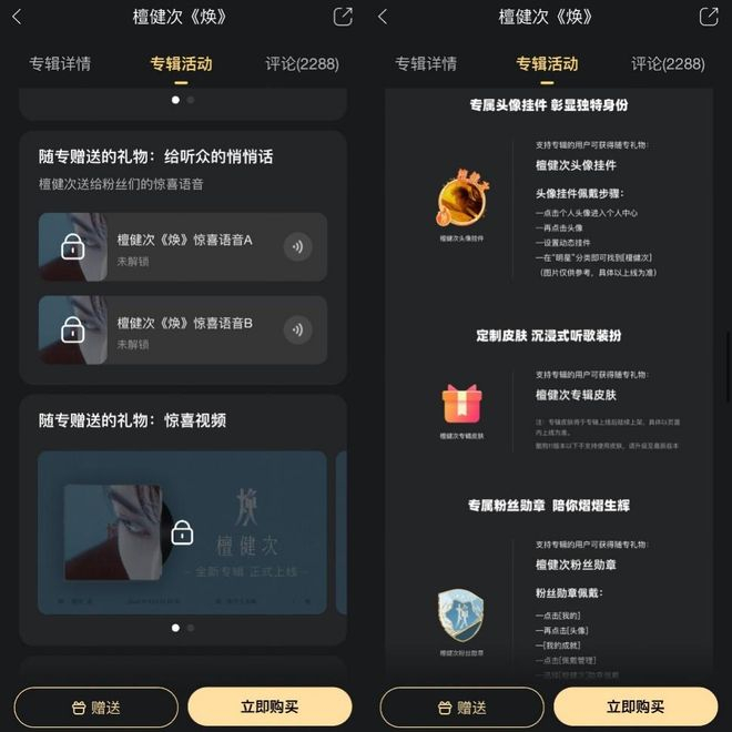 为了回馈广大乐迷的支持与喜爱,酷狗音乐也为《焕》专辑的上线推出了丰富的福利活动。支持新专辑的歌迷朋友,即可解锁檀健次未公开写真等惊喜福利。同时,平台还为用户提供了丰富的互动福利,特意为粉丝们准备了檀健次的专属语音、视频惊喜,以及抢靓号铭牌赢取签名照活动!还有专属头像挂件、定制皮肤和专属粉丝勋章,让“小炭火”们在欣赏音乐的同时,感受共同分享音乐的快乐。