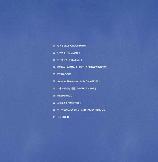 全专曲目:共11首,包括《SELF CRUCIFIXION》《THE GIANT》《ZERO-COKE》等,风格融合实验摇滚与抒情。
