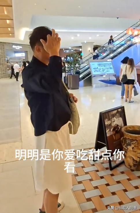 配着太太逛商场的时候,他不像很多人纯粹就是个“拎包工具人,镜头里的他会认真问太太 “你觉得我适合粉红色吗?”,被否定后又乖乖选白色和蓝色。