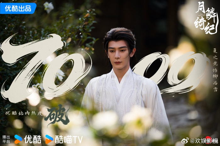 白衣覆雪,心守一诺。欢娱影视@演员夏之光 特邀主演的《#月鳞绮纪# 》优酷站内热度破7000!