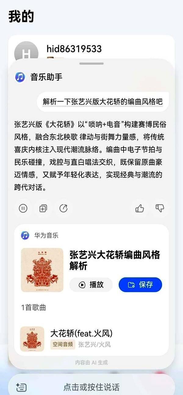 华为音乐的音乐助手为这首歌的传播提供了极大的便利,听众可以通过简单的操作,了解到歌曲的背景与创作意图。