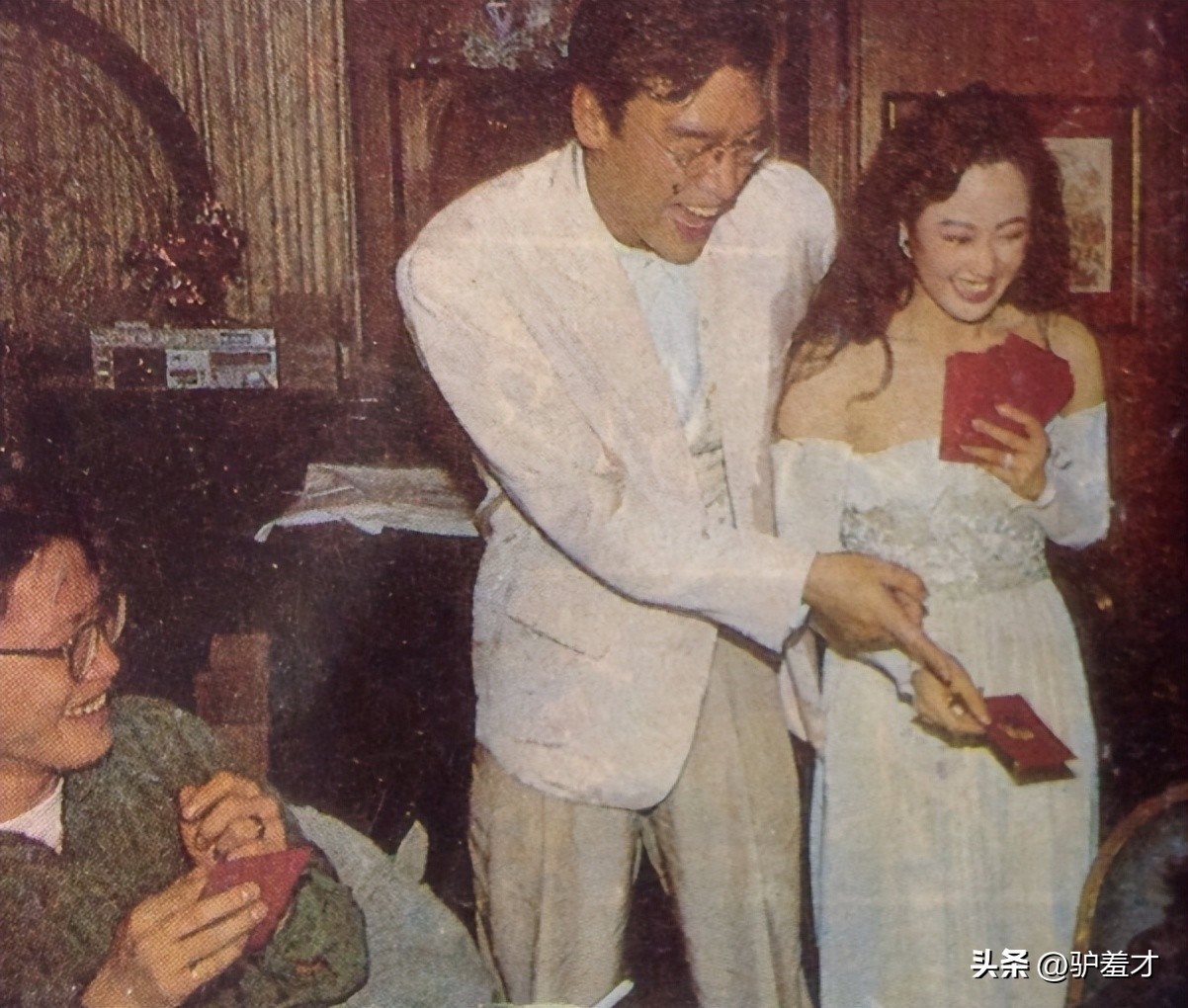 婚礼现场,半个娱乐圈的名流纷至沓来,张国荣、王祖贤等大咖都现身祝福。