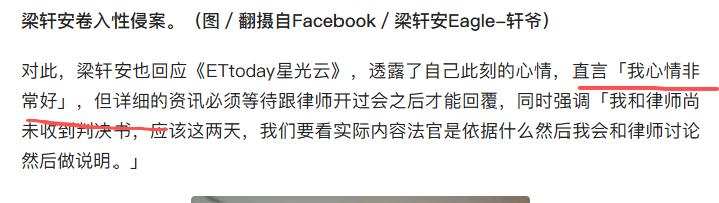 更令人费解的是,梁轩安似乎压根没把这份判决放在心上。面对媒体询问,他竟直言 “我心情非常好”,一副毫不在意的样子。