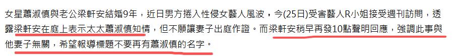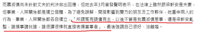 得知此事后,梁轩安反倒突然摆出 “好丈夫” 的姿态,呼吁媒体不要提及妻子的名字,称一切都与萧淑慎无关。