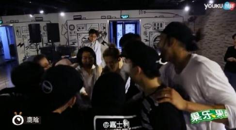 虽然时间紧迫,大家有条不紊的紧张排练,却丝毫影响不了他们乐观中二的性格,你看,鹿晗一本正经着弹奏着空气小钢琴,心有灵犀的队友们打着亮光灯响应着。