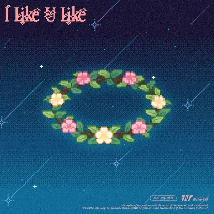 《I Like U Like》是时代少年团近期发布的一首单曲,属于都市电子流行风格,整体基调甜美轻快,以青春恋爱为主题。歌词反复强调“I like U like U like me”,表达对心仪对象的直白喜欢和浪漫憧憬,内容充满少年感的纯真告白,如“放弃整理缠绕的思绪,拿起一朵玫瑰放在手心”等意象,营造出初恋般的甜蜜氛围。歌曲通过重复的旋律和简单上口的副歌,强化了情感共鸣,使其易于传播和记忆。