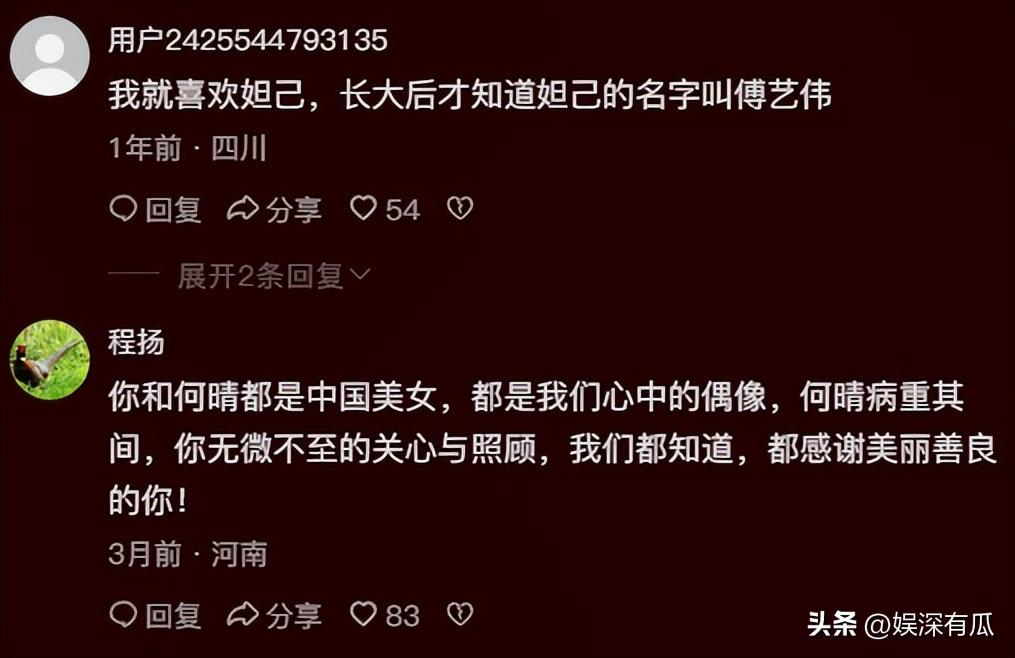 ,1. **老粉@傅艺伟的逆袭者**: ,“从最美妲己到现在的低调生活,原来真的是‘人生如戏’啊!虽然看起来孤单,但我相信她会重新找到属于自己的光彩。”,2. **吃瓜群众@吃瓜小王子**: ,“傅艺伟的生活真的太跌宕起伏了,作为曾经的超级星,她现在的日子真的没法太过于隐忍了吧?”,3. **无神论者@神不守舍**: ,“从红到不红,从焦到淡,傅艺伟的人生真的就像一部戏剧,虽然现在的她不再风光,但她的经历却让人感动!”,4. **影迷@追星小天使**: ,“傅艺伟的近况真的让人心疼,作为初见的女神,她现在的生活却是如此低调和孤单。”,5. **吃瓜大师@吃瓜侠**: ,“想不到吧?曾经最美的女演员,现在却在北京默默无闻地过着平凡生活,真是人生无奈!”,6. **老友@曾经的粉丝**: ,“从最炫耀的‘最美妲己’到现在的低调生活,傅艺伟的经历真的很值得反思,人生总是充满了未知。”,7. **吃瓜高手@吃瓜老司机**: ,“傅艺伟的生活确实很难,但她的人生却让人看到了坚韧和勇气,继续前行吧!”,8. **网友@吃瓜小站**: ,“从小看过她,长大后依然关注她,傅艺伟的近况真的让人心酸,但也希望她能早日重新出山!”,9. **吃瓜新人@吃瓜学徒**: ,“傅艺伟的人生真的太戏剧化了,从巅峰到谷底,从孤独到坚强,感叹人生无常!”,10. **吃瓜老人@吃瓜爷爷**: ,“傅艺伟的生活虽然孤单,但她的经历却让人看到了坚韧和不屈,继续坚持吧!”,希望这些评论能满足您的需求!