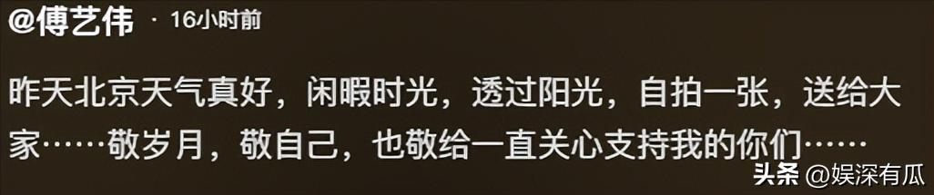 如今傅艺伟在北京过着买买菜,散散步的悠闲生活,能够将自己的近况发布在社交平台上也算是她做出的最大努力改变。