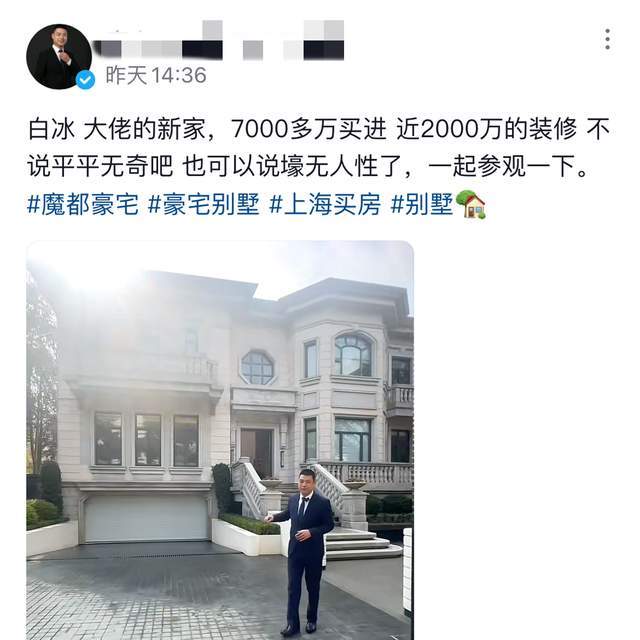 前年2月份,有房产中介透露白冰斥资7000万购入豪宅,光装修就花费了2000万。由此来推断,他所承认的事实应该是来自这套房子。