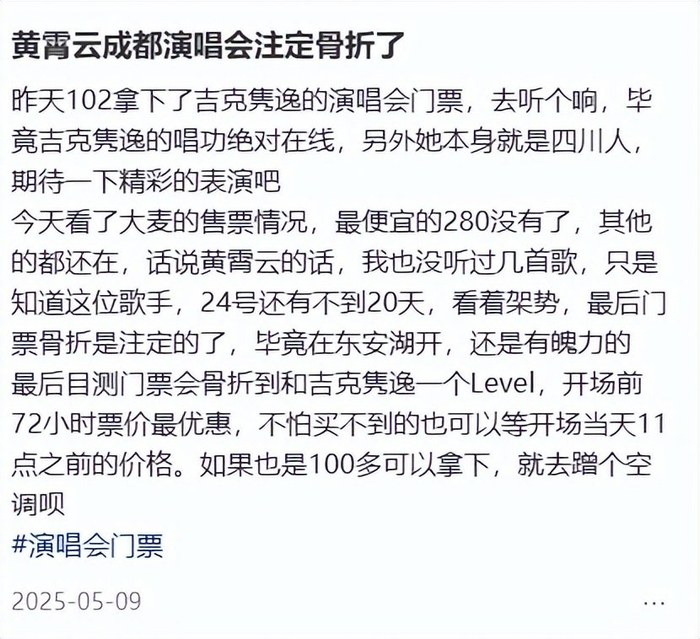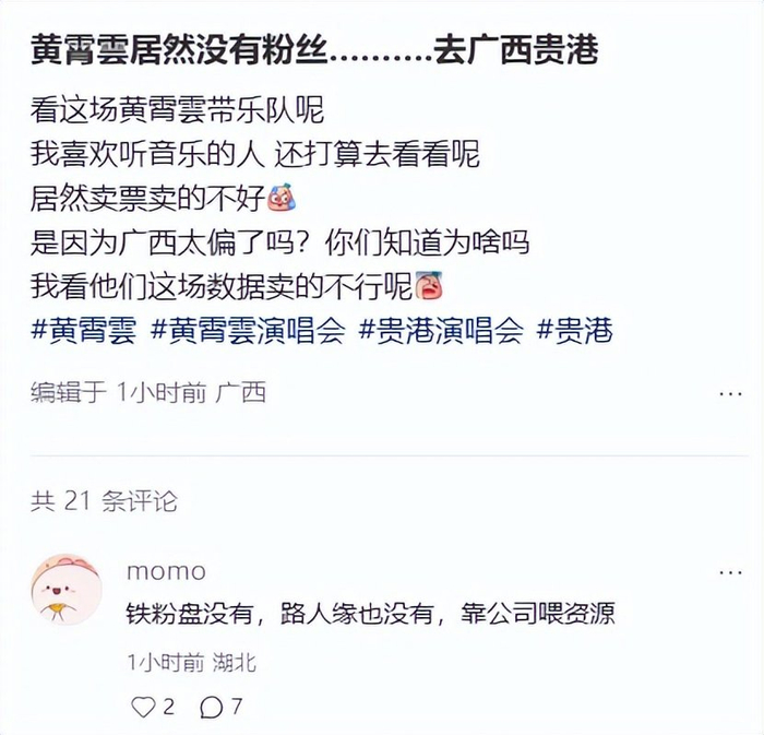 她最近的拼盘音乐节也卖相不佳,迟迟卖不完票,又惹来不少网友的吐槽。